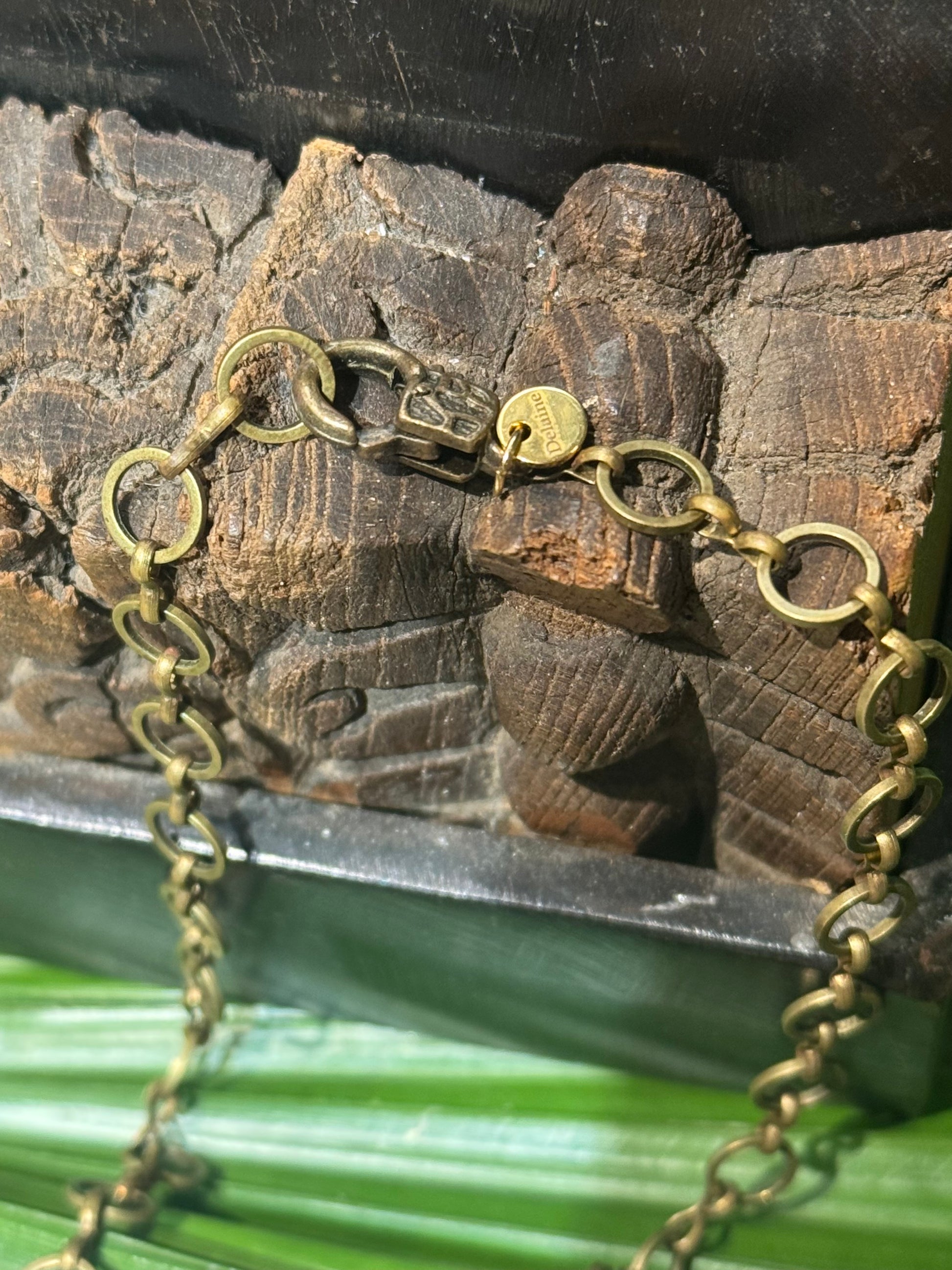 The Bronze Requiem Shark Tooth Necklace features a genuine requiem shark tooth, sourced from the coastal waters of Georgia. The tooth is elegantly suspended within a gold bronze circle chain, making it a unique accessory that connects wearers to beach-inspired aesthetics and marine life. This piece combines natural history and style, appealing to those interested in oceanic artifacts. 17-18 inches long