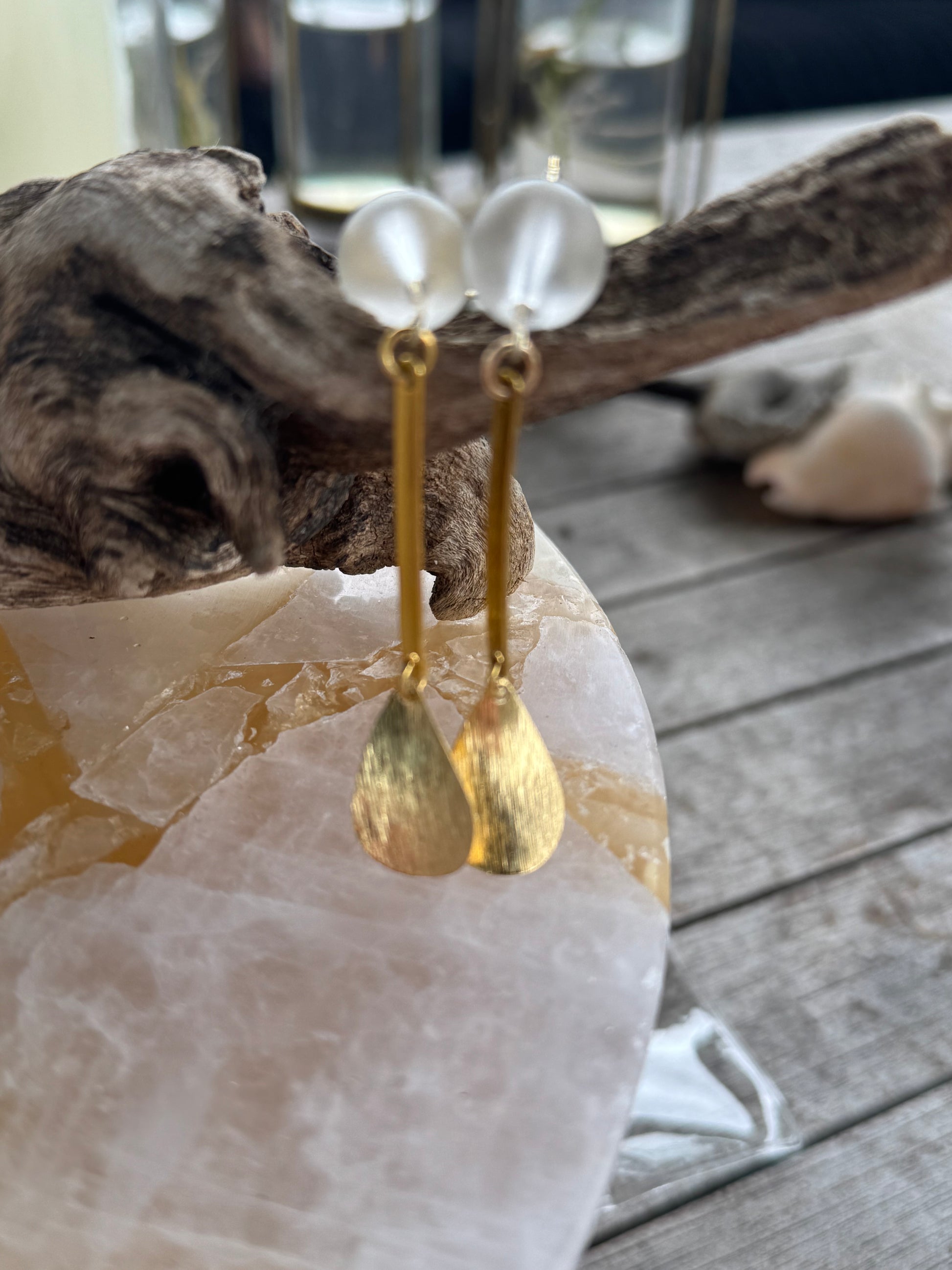 18k gold plated, white glass beads, gold metal Expertly crafted, these Coastal White Glass Earrings feature 18k gold plated metal and delicate white glass beads for a luxurious and chic look. Elevate any outfit with their subtle shine and timeless design. Perfect for any elegant occasion or as a stunning gift for someone special.