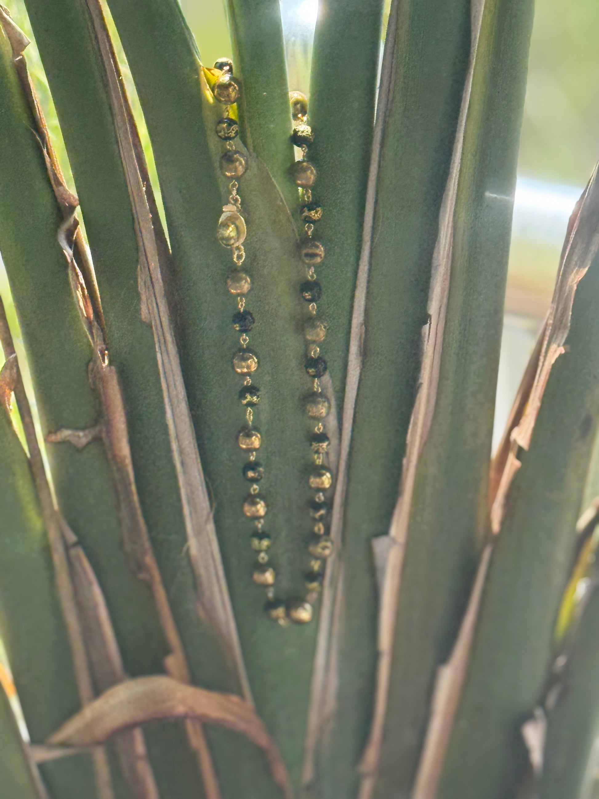 Expertly crafted with black and gold Japanese beads, this one-of-a-kind necklace is perfect for both dressy and casual occasions. Each bead is custom designed, making this piece truly unique. Elevate any outfit and make a statement with this beautifully detailed necklace.